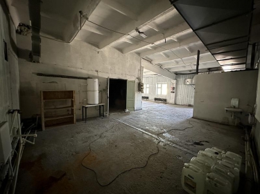 Второе помещение 220 м2 с высотой потолка 4,3 м и воротами высотой 2,5 м и смотровой ямой.