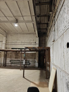 Помещение состоит из двух смежных частей, наглухо разделенных стальным листом. Возможен демонтаж перегородки.