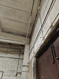 Помещение состоит из двух смежных частей, наглухо разделенных стальным листом. Возможен демонтаж перегородки.