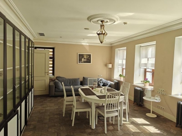 Дорогая, качественная отделка, дорогая качественная мебель, домашний уют, качественный паркет на полу. Просторное фойе также с дорогой мебелью.