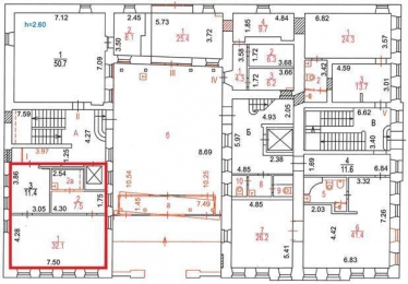 Офисное помещение расположено на 1-ом этаже и состоит из двух комнат (32 и 11,5 кв. м) и двух подсобных помещений (12 кв. м). Также есть места общего пользования с креслами, диванами. Везде домашний уют и домашняя атмосфера. Смотрите схему: границы, сдаваемого помещения, выделены красным цветом.