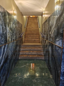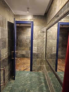Вся отделка выполнена из качественного дорогого материала: мрамор, паркет, дерево.