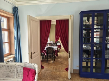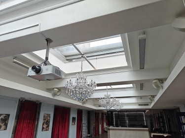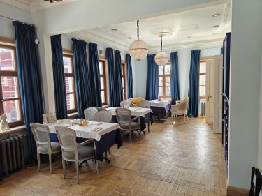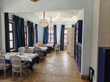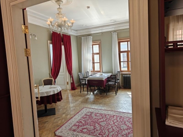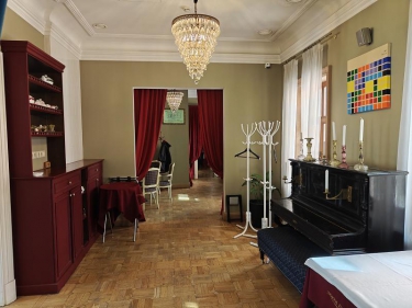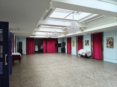 На цокольном этаже просторый светлый банкетный зал (215 кв. м) с естественным освещением, 3 санузла и много подсобных помещений (поэтажный план прилагается). Площадь всего цокольного этажа 446 кв.м.