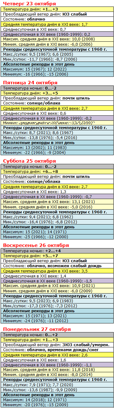 Заключительная декада вроде должна оказаться чуть выше своей климатической нормы, сложившейся в XXI веке, зато месяц в целом, похоже, займёт почётное третье место в рейтинге самых холодных в двухтысячных годах (во второй половине прошлого века была целая россыпь холодных октябрей, пусть они останутся в скобках).