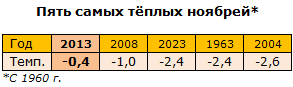 В первую пятёрку аномально тёплых ноябрей один представитель прошлого века всё же пролез: