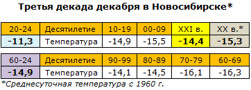 Вторая декабрьская декада в итоге скорее всего будет почти на четыре градуса выше своей климатической нормы, сложившейся в XXI веке. Первая декада, напомню, тоже была на градус с хвостиком над своей нормой. Вот с заключительной декадой пока непонятка: прогнозы меняются каждый день от жутких минусов до вполне комфортной погоды. И снег – много снега...
