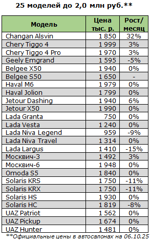 В заключение – наиболее доступные по цене модели в автосалонах.