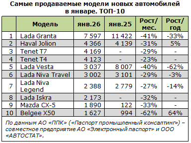 В рейтинге самых востребованных моделей две первые позиции неизменны с августа прошлого года, даже несмотря на сокрушительное падение продаж в начале года. Собственно, пали все, ибо треть месяца никто не работал, подобная картина наблюдается каждый год. Почему-то наиболее заметно просел белорусский «китаец» Belgee X50, едва втиснувшийся в ТОП-10, хотя ещё в сентябре он был четвёртым. В том месяце в десятке лидеров был ещё и «собрат» Belgee X70, но в декабре он тихо ушёл во вторую десятку рейтинга продаж – и пока не вернулся.