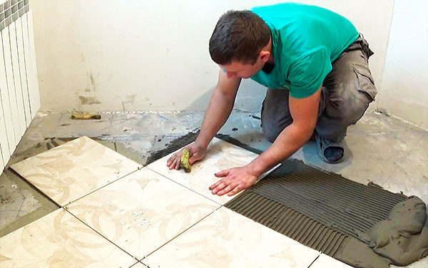 3. Укладка плитки. Главной задачей при укладке является достижение полного контакта между клеевым составом и плиткой, воздушное пространство под изделием порой является основной причиной образования сколов и трещин.