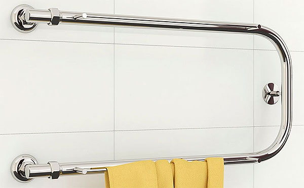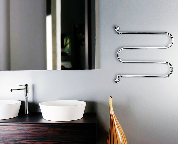 Наилучшую теплоотдачу при любых условиях демонстрируют однотрубные модели, змеевик которых согнут в виде правильной плоской фигуры. Для ванных комнат малого и среднего размера удобно приобретать небольшие полотенцесушители, напоминающие буквы.