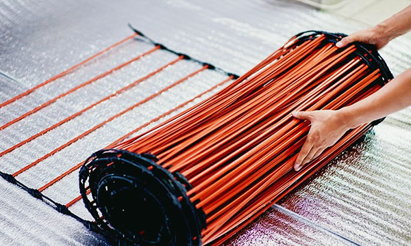 Инфракрасный стержневой тёплый пол представляет из себя карбоновые стержни в мате, соединённые между собой с помощью медных кабелей.