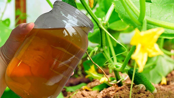 7. Чтобы получить богатый урожай огурцов, нужно их регулярно подкармливать. Хлебная закваска считается едва ли не лучшим удобрением. Приготовить её очень легко. Надо наполнить ведро на 2/3 корочками чёрного хлеба, залить водой и прижать чем-нибудь тяжёлым, чтобы содержимое не всплывало. Ведро оставить на неделю для брожения в тёплом месте. Полученную закваску разбавить водой (1:3) и поливать огурчики под корень – по 0,5 л под куст.