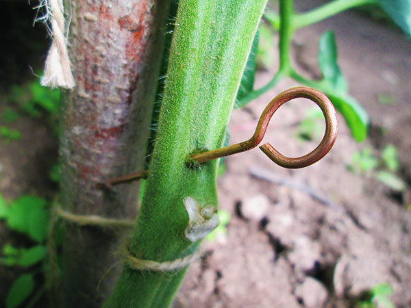 Рецепт: тонкую медную проволоку прокалить (можно зачистить наждачной бумагой), нарезать кусками по 3-4 см. На расстоянии 10 см от почвы сделать прокол стебля, вставить кусочек проволоки, загнуть концы вниз. Не обматывать вокруг стебля!