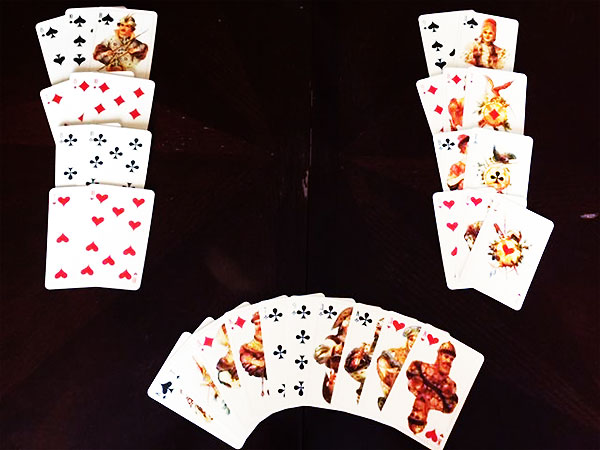 Естественно следующий за вами игрок тут же вистует, чтобы вы не одумались - катастрофа, кошмар... Вы мечтаете остаться хотя бы без двух, делаете ход в пикового туза, вистующие открывают карты и... вы понимаете, что девятерная сыграна!