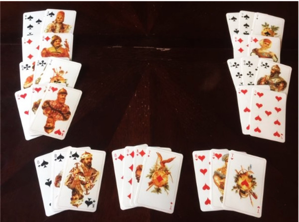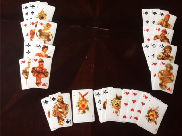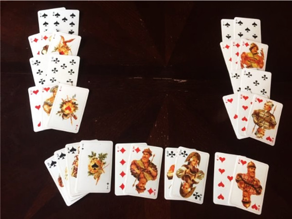 ЮГ: пика - 7, 8, 9, 10, К; бубна - 8, Д, К; черва - 7, 8.