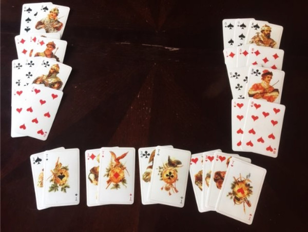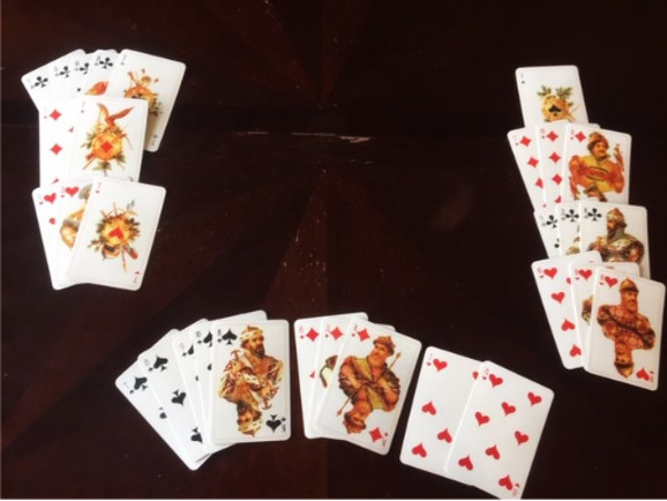 ЮГ: пика – Д, Т; трефа – Д, Т; бубна – Д, Т; черва – В, Д, К, Т.