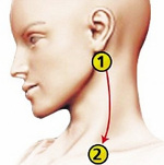 Помогает бороться с повышенным давлением воздействие на акупунктурные точки. Есть простой способ понизить давление, воздействуя на линию, располагающуюся от углубления под мочкой уха и до ключицы. Приложите указательный палец в углубление под мочкой уха, нажмите и проведите по линии до середины ключицы. Воображаемая линия должна быть практически вертикальной. Давить на эту линию сильно не стоит, достаточно просто поглаживать кожу пальцем и провести по 8-10 раз с каждой стороны головы, чтобы давление частично понизилось. Результат при желании можно зафиксировать на тонометре, измерив давление до массажа и сразу после него.