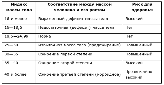 Ничего хорошего нет и в том случае, если ваш индекс BMI ниже нормы — масса тела считается недостаточной, есть реальная опасность истощения. Впрочем, для женщин моложе 18 лет индекс слегка ниже 19 считается нормальным.