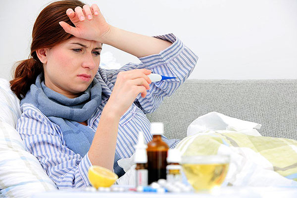 3. Острая. Начинается с лихорадки, часто сопровождающейся ознобом, появляются признаки интоксикации (головная, мышечная, суставная боль и другие), сильный сухой кашель, несколько позже присоединяются другие катаральные симптомы (насморк, заложенность носа, боль в горле).