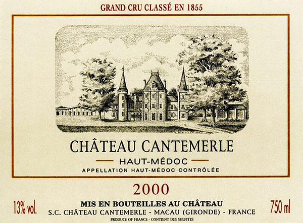 3. Grand Cru Classe en 1855 – надпись свидетельствует, что виноград для этого вина выращен на винограднике, классифицированном в 1855 году. Всего таких крю в Медоке 60 и один из них принадлежит замку Кантемерль.
