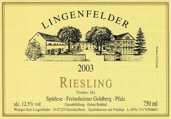 На этикетке германского вина Lingenfelder Riesling видим: