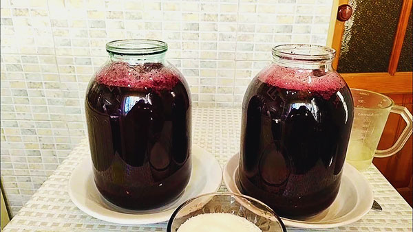 Когда измерительное оборудование отсутствует, внести 100 г сахара на 1 л сока. Прогнозируемая начальная концентрация сахара – 5% (с учётом естественного в ягодах и засыпанного вместе с водой).