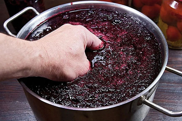2. Раздавить черноплодку руками. Нельзя использовать блендер, мясорубку и другие механические способы, повреждающие косточки, иначе вино получится очень горьким.