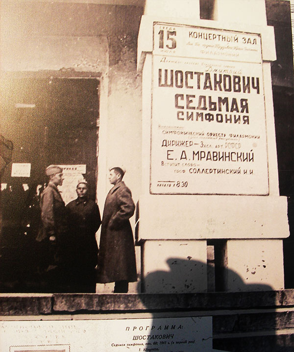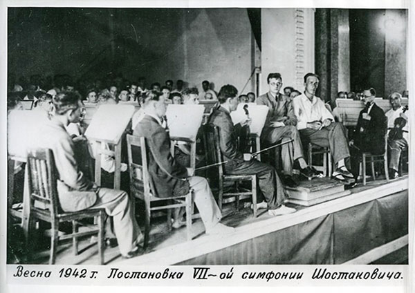 Уже через месяц после прибытия в Новосибирск в Доме культуры имени Сталина был открыт филармонический сезон. Несмотря на тяжёлое военное время, Мравинский и Соллертинский категорически требовали показать лучшее, что создано в мировой классической музыкальной культуре. Легендой стало исполнение 9 июля 1942 года Ленинградской Седьмой симфонии Дмитрия Шостаковича. Композитор приехал в Новосибирск из Куйбышева, где жил в то время. Он дружил и с Мравинским, и с Соллертинским, их совместная работа проходила в творческой атмосфере. Шостакович остался очень доволен работой оркестра. На той премьере присутствовал также известный советский джазовый музыкант Леонид Утёсов.