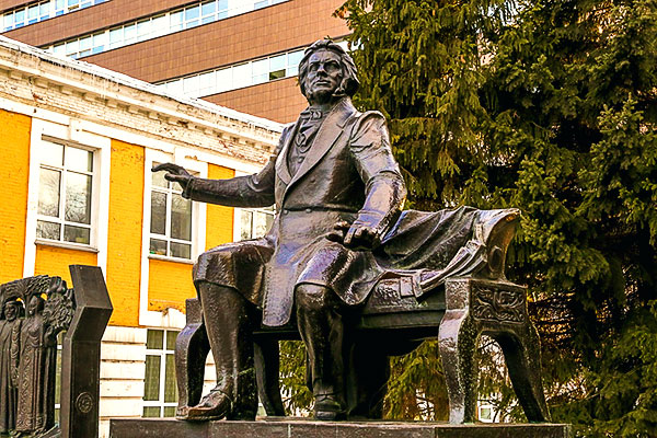 Возле новосибирской консерватории на каменном кресле восседает фигура человека. Это Михаил Иванович Глинка. Рассказывают, что когда-то этот памятник стоял в вестибюле учебного заведения. Студенты бросали на колени великому композитору свои портфели, папки, ноты. А потом Глинку решили вынести на свежий воздух. Сейчас у ног гения проводят церемонии посвящения в студенты и награждают начинающих музыкантов.
