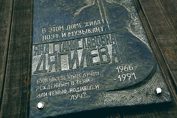 Память рок-музыканта Янки Дягилевой увековечили в Новосибирске поклонники её творчества. О талантливой сибирячке напоминает мемориальная доска на одноэтажном деревянном доме № 61 на улице Ядринцевской.