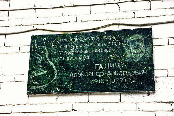 Александру Галичу посвящена памятная табличка в Академгородке на здании бывшего клуба «Под интегралом» — на проспекте Академика Лаврентьева, 16. Бард выступал здесь в 1968 году в рамках фестиваля авторской песни. Это был единственный концерт Александр Галича в СССР. Событие прошло при полном аншлаге. Выступление записывали на несколько магнитофонов одновременно, и эти записи впоследствии разошлись по всей стране.