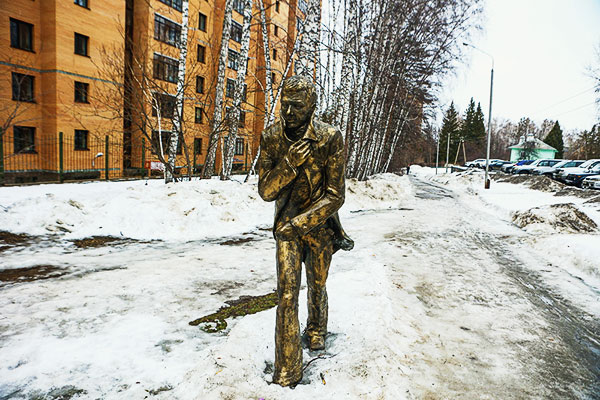 Установлен памятник в Академгородке на улице Терешковой, через дорогу от арт-клуба «НИИ КуДА». Будете там — обратите внимание на левую руку героя: в неё можно вложить цветы и таким оригинальным способом встретить девушку на свидании. А ещё говорят, что влюблённые часто вкладывают туда записки для передачи друг другу.