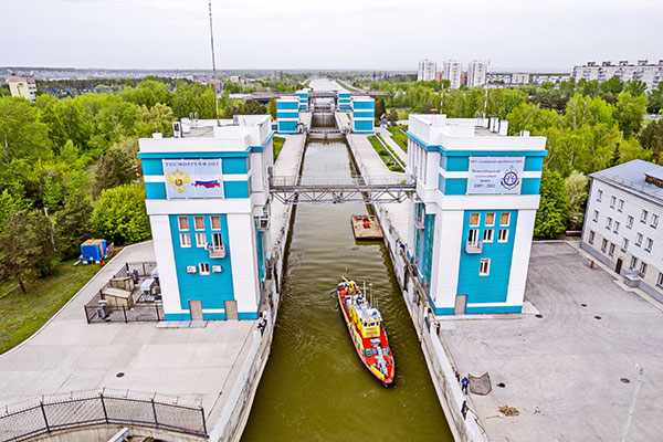 Судно при подходе к плотине устанавливает радиосвязь с начальником вахты шлюза. Суда швартуются у причальной стенки в одну линию. Разрешение на вход даётся зелёным сигналом светофора и дублируется по радио. Длина судна или состава не должна превышать 130 метров, ширина — 17, габаритная высота — 12 метров. При заходе в шлюз речники учитывают направление и силу ветра. Вода из моря заполняет камеру до тех пор, пока её уровень не станет одинаковым. Рыб в это время начинает засасывать в воронку, жалко их... Ворота камеры опускаются, судно заходит, внешние ворота закрываются. И так три этапа. Весь проход судна через шлюзы занимает сорок минут. Картина, особенно в ясную солнечную погоду, захватывающая.