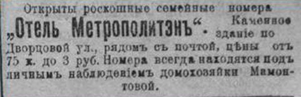 Хозяйку дома звали Матрёна Маркеловна. Мамонтова, конечно. Так что буква «М» на фасаде актуальна трижды. Или даже четырежды, если считать название гостиницы.
