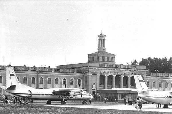 В 1934 году открыли первый, ещё деревянный, аэровокзал. Через год — каменный одноэтажный. Позже в нём размещалось троллейбусное управление — обветшавшее здание сохранилось до сих пор.