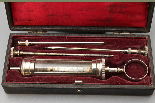Тогда же шотландский врач Александр ВУД разработал медицинский шприц для подкожных инъекций с иглой, достаточно тонкой, чтобы проколоть кожу. Своё изобретение он начал тут же испытывать и решил проводить эксперименты с инъекциями морфина для лечения нервных заболеваний. Причём уколы он делал и себе, и жене - в итоге семейная пара пристрастилась к «лекарству». Супруга Вуда стала первой женщиной, умершей от передозировки инъекционного наркотика.
