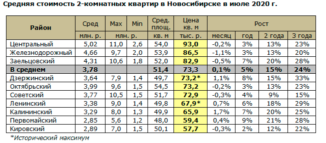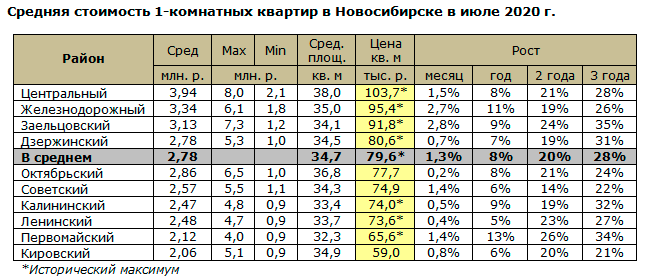 Стоимость квадратного метра в однокомнатных квартирах в июле достигла рекордной отметки сразу в семи районах и при этом, естественно, в целом по Новосибирску. Ежемесячный рост не в процентном, а в денежном выражении выглядит незначительным - в июле, скажем, средняя однёшка в Новосибирске стала дороже на 25 тысяч рублей. Любопытней взглянуть, как изменились цены за год и за три.