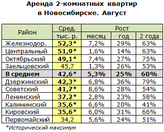 В этом секторе схожая картина. В июне исторический максимум запросов обновился только в двух районах, в июле в пяти, в августе – в восьми. Поскромничали собственники жилья в Заельцовском да в Первомайском районах.