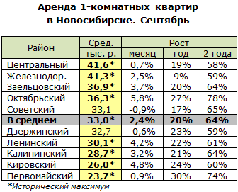 Сентябрь не остановил спрос на однокомнатные квартиры. В восьми из десяти районов, как и в августе, собственники жилья подняли планку на рекордную высоту. Но желающих снять однушку, похоже, это не останавливает. В Калининском, Ленинском и Первомайском районах исторический максимум обновляется третий месяц подряд.