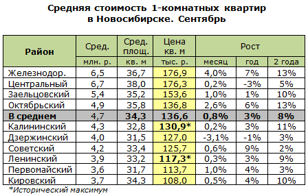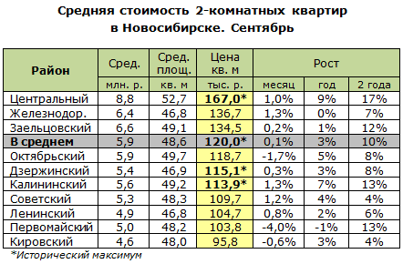 За два года средняя цена в городе поднялась примерно на 450 тысяч рублей. Круче всех подняли планку в Железнодорожном (+1,1 млн руб.), Заельцовском (+650 тыс.) и Центральном (+600 тыс.) районах. Минимально выросла цена предложения в Советском (+150 тыс.) и Дзержинском (+100 тыс.).