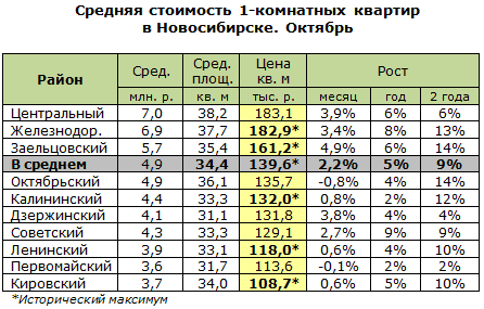 По сравнению с началом нынешнего года средняя цена в целом по городу почти не изменилась. При этом продавцы Калининского и Первомайского районов подняли планку на 500 тысяч рублей, зато в Железнодорожном цена предложения упала на 400 тысяч. В Заельцовском, Кировском и Октябрьском районах запросы стали скромнее на 100 тысяч рублей.