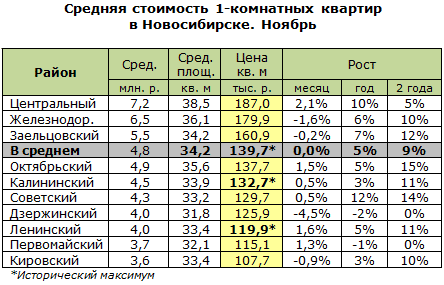 На вторичном рынке недвижимости в Новосибирске затишье. Однокомнатные и трёхкомнатные квартиры в среднем предлагаются по той же цене, что в октябре, но с вероятным дисконтом при заключении реальной сделки, а в двухкомнатные стали дешевле примерно на один процент.