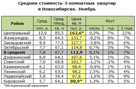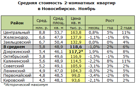 Только в Дзержинском районе стоимость квадратного метра в средней двушке поднялась до исторического максимума. В семи из десяти районов города запросы собственников жилья стали скромнее, чем в октябре, а в Первомайском впервые с февраля текущего года средний квадратный метр оценивается ниже 100 тысяч.