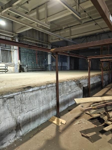 Помещение состоит из двух смежных частей, наглухо разделенных стальным листом. Возможен демонтаж перегородки.