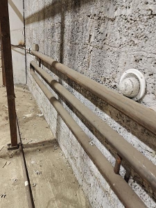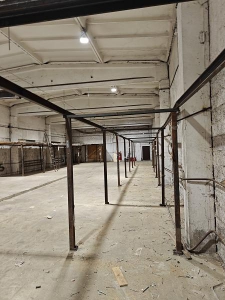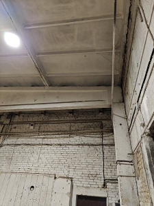 Помещение состоит из двух смежных частей, наглухо разделенных стальным листом. Возможен демонтаж перегородки.