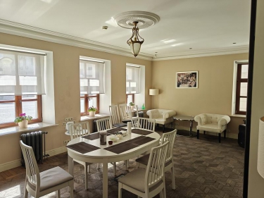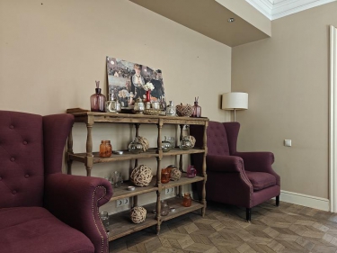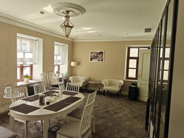 Дорогая, качественная отделка, дорогая качественная мебель, домашний уют, качественный паркет на полу. Просторное фойе также с дорогой мебелью.