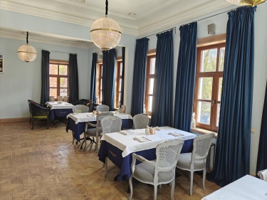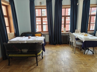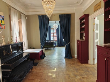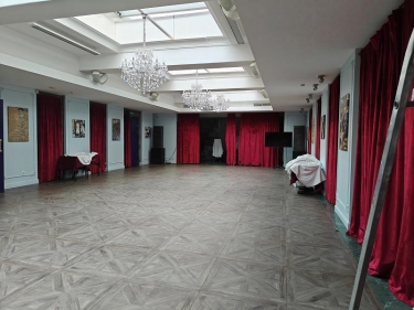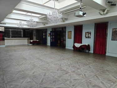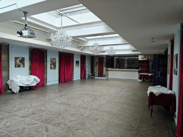 На цокольном этаже просторый светлый банкетный зал (215 кв. м) с естественным освещением, 3 санузла и много подсобных помещений (поэтажный план прилагается). Площадь всего цокольного этажа 446 кв.м.