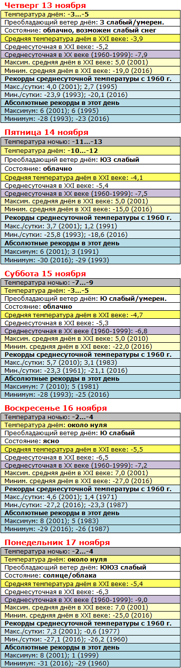 Главная новость ближайшего уикэнда – окончание 11-дневной серии осадков, которые, по-моему, задолбали всех горожан и вымотали до основания коммунальщиков. Невозможно привести улицы в порядок, когда их постоянно засыпает снегом вперемешку с дождём, а поутру народ (чертыхаясь) и машины (пыхтя) едва тащатся по льду. На выходных вакханалия прекратится – месячная норма осадков уже на треть перекрыта...