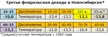 Вот в десятке самых суровых, может быть, 2026 году место и найдётся. Ниже 20 градусов среднедекадная температура опускалась семь раз в предыдущие 66 лет, так что не исключено, что будет восемь...