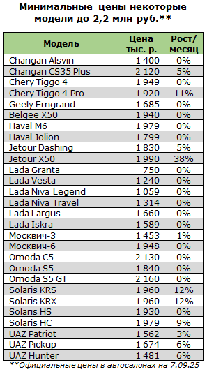 В заключение – наиболее доступные по цене модели в автосалонах.